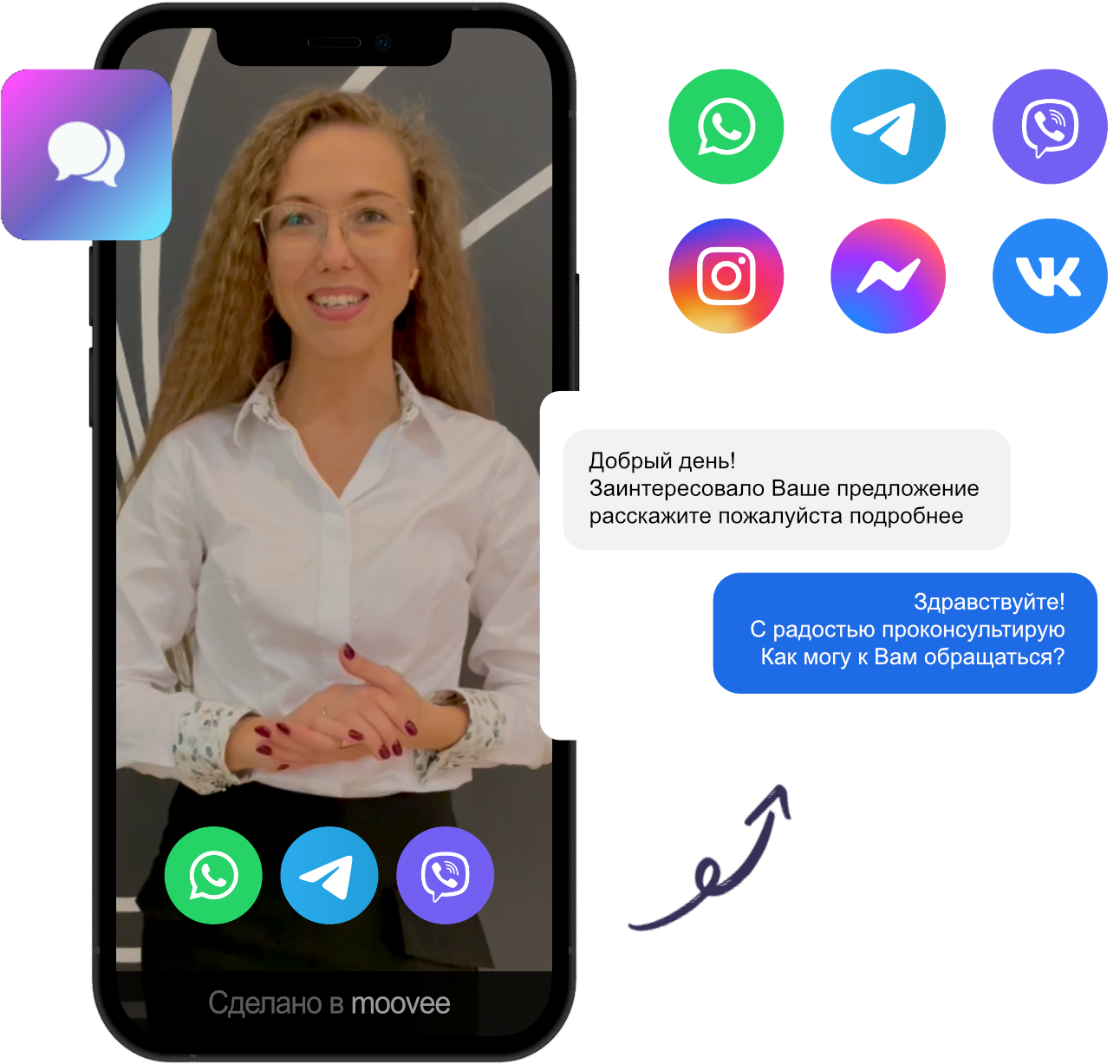 Легко добавляйте кнопки перехода в любой мессенджер. Общайтесь с клиентами там где им удобно
